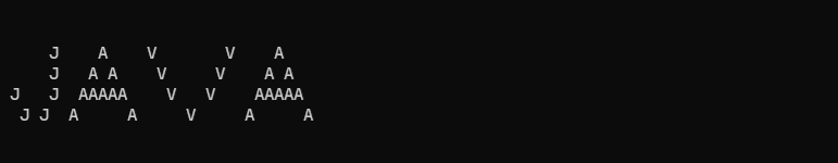 A simple Java program that prints a stylized “JAVA” pattern using System.out.println.